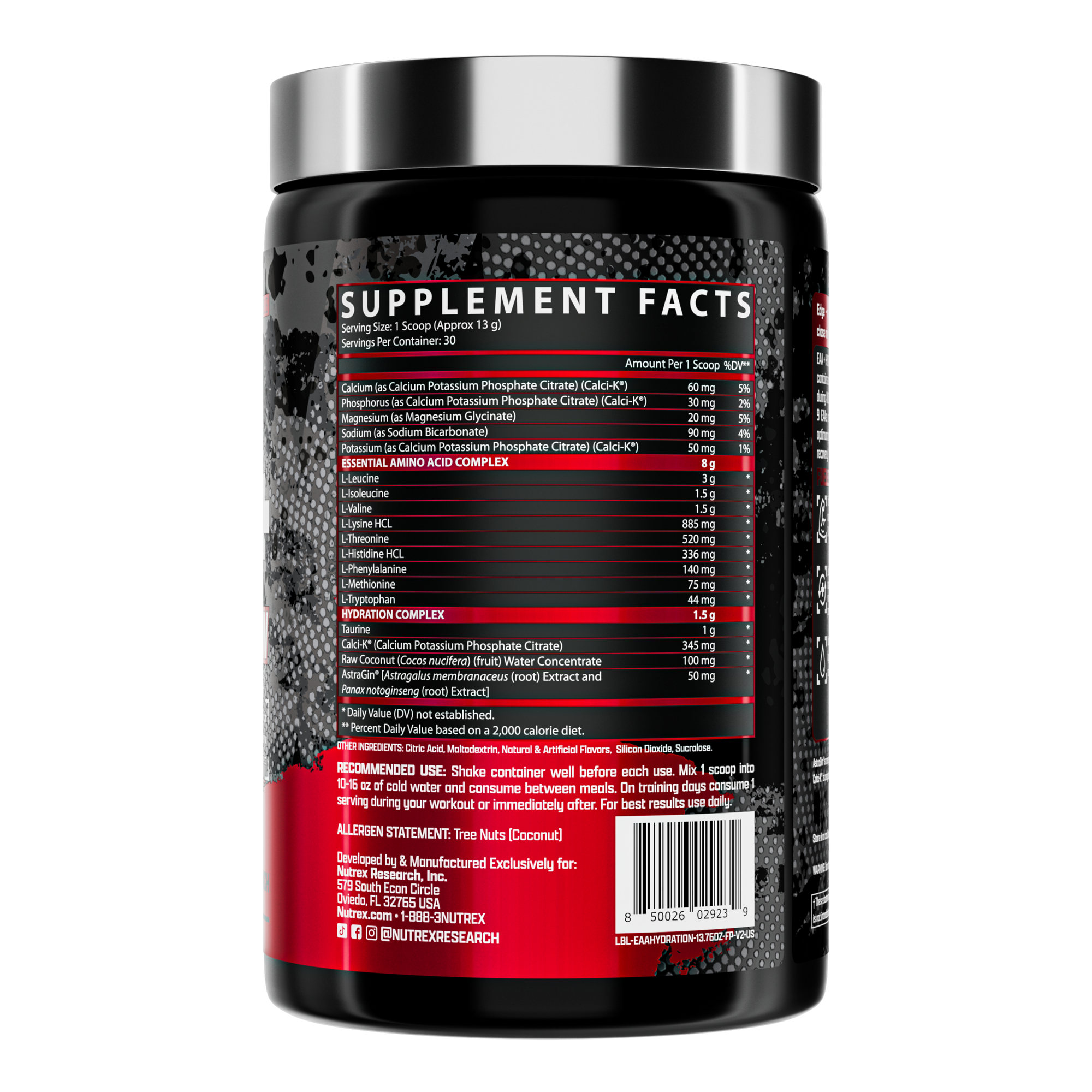 EAA+ Hydration هو مزيج ديناميكي من الأحماض الأمينية الأساسية والترطيب المتقدم. صُممت تركيبته لتحسين تعافي العضلات ونموها وتوازن الإلكتروليتات. مع 8 غرامات من الأحماض الأمينية الأساسية و6 غرامات من الأحماض الأمينية المتفرعة السلسلة (BCAAs) بنسبة 2:1:1، يساعدك على تجاوز حدودك أثناء التمارين المكثفة، وتحقيق أعلى أداء، وتعزيز تعافي العضلات، وزيادة كتلة العضلات الهزيلة.
